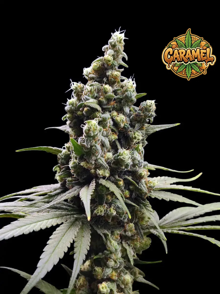 Caramel is as generous as it is potent, offering indoor yields ranging from 400-550 g/m², while outdoor cultivation can yield between 350-600 g per plant. The strain boasts a significant THC content of 15-20%, paired with a CBD level of 1.5%, delivering a balanced experience that marries therapeutic potential with recreational enjoyment.